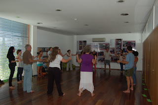 As sessões podem contar com a utilização de mediadores como: música, dança, riso, dinâmicas de grupo, jogos .... como facilitadores do desenrolar lúdico e positivo dos temas e das vivências."